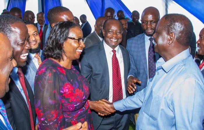Dagoretti North Member of Parliament Beatrice Elachi (left) and Azimio’s Raila Odinga during the Parliamentary Group meeting held on November 29, 2023.