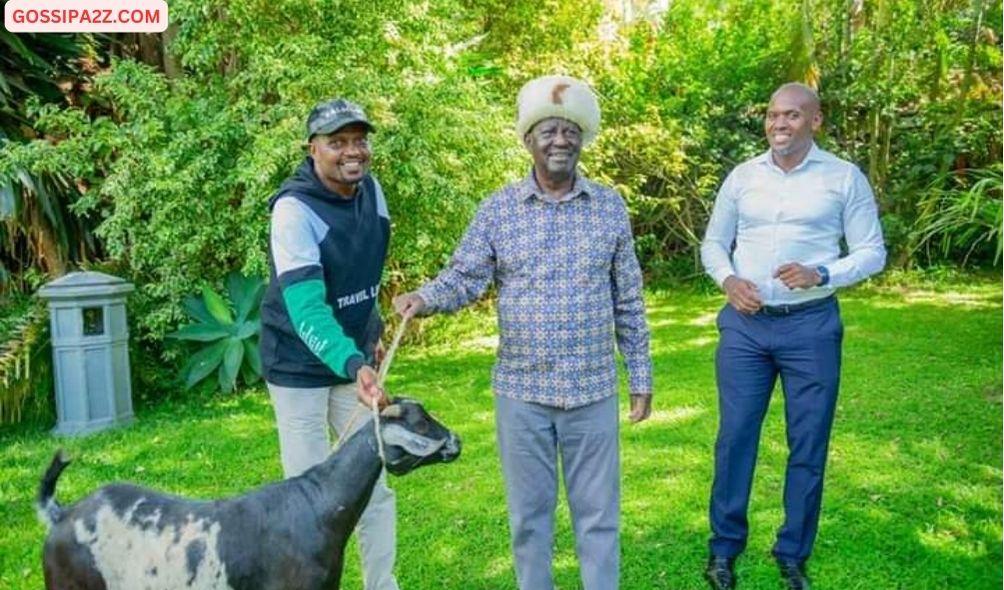 During the event, Kuria who was accompanied by his mother Mama Teresia, and his wife Mama Joyce, gifted Raila a goat.
